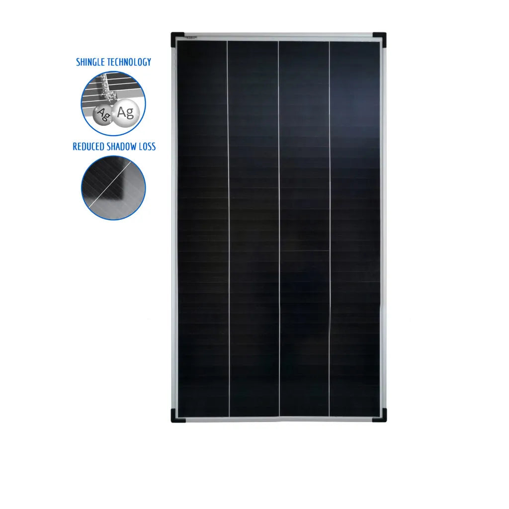 Shingled PERC is a new breakthrough in solar cell technology. This innovative technology for interconnecting the cell minimizes electrical losses from cell to cell which results in higher module efficiency. This high power, high-density Shingled PERC module are very robust and suited to mobile vehcles including Caravan, RV and Boating. The busbar-free structure means only a small proportion of cells are not exposed to sunlight allowing for better performance when shaded.