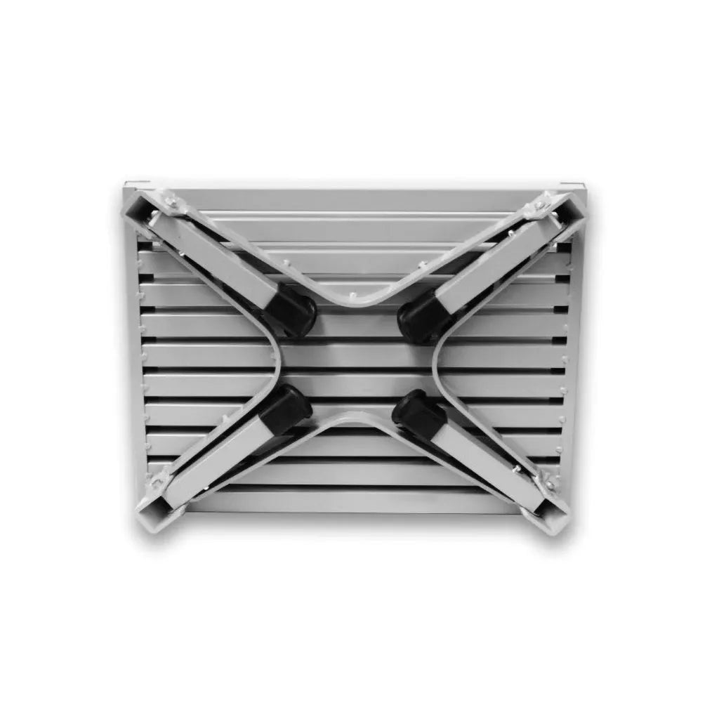 This step is extra wide for stability and safety. It has non-skid strips on the tread to ensure no nasty slips. Rubber feet not only ensure that the step does not move while being used but it also serves to protect the surface the step is being used on.
