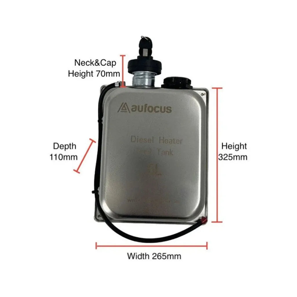 - 5 Litre Stainless Steel Fuel Tank with Level Gauge: This heater features a stainless steel tank as standard, eliminating concerns about corrosion.