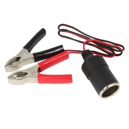 Cigarette 12v socket to two insulated crocodile clips ideal for connecting 12V appliances (fitted with a cigarette plug) directly to a leisure or car battery.
