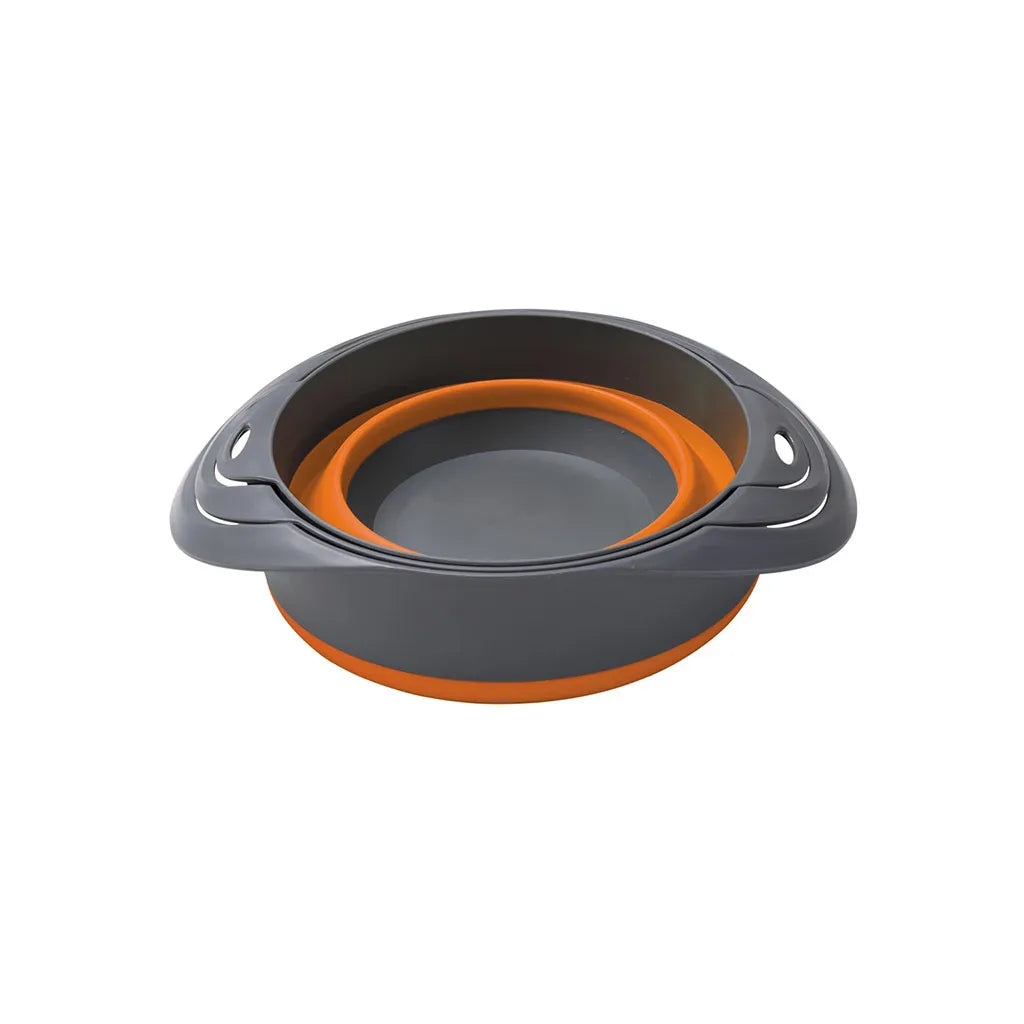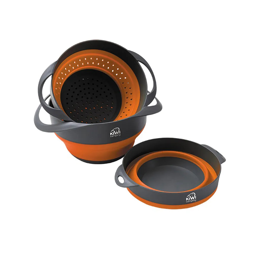 The Kiwi Camping Coppalsible Bowl & Colander set is flexible, lightweight and durable. It's collapsible and nesting design allows for compact storage, and is easy to clean, BPA-free plastic