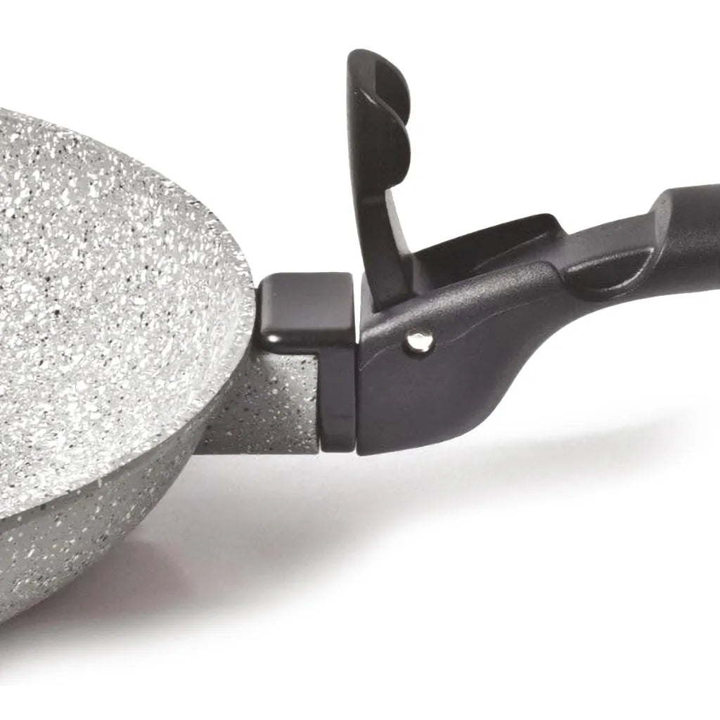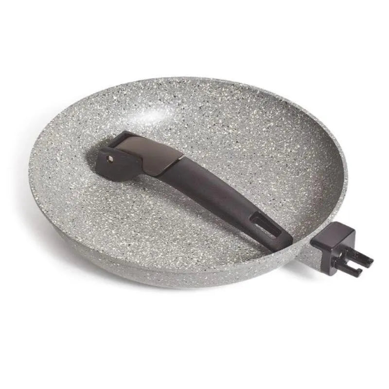 Versatile, lightweight compact cookware range. A stylish triple coated non-stick cooking surface. The patented easy flip and locking handle mechanism allow for easy storage. Suitable for induction, electric & gas cooktops.