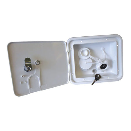This unit features two inlets, one for mains water and one for filling up your water tank.
