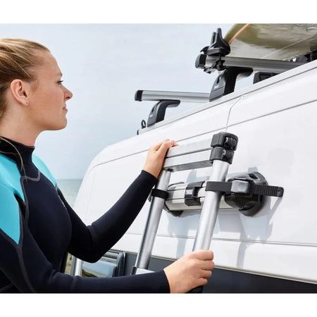 Telescopic ladder for easy access to roof-mounted accessories - Safely installed using fixation kit.
