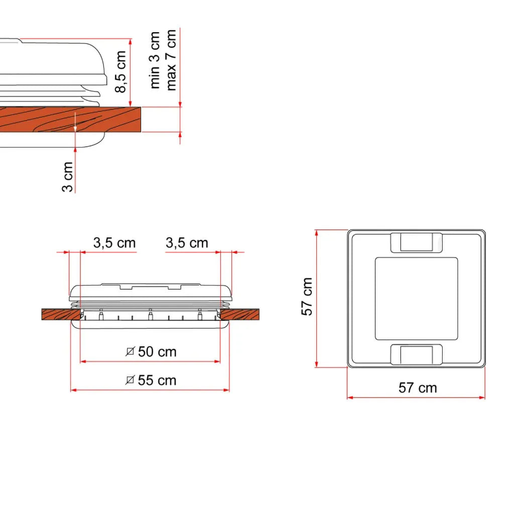 - Cut-out: 500 x 500mm