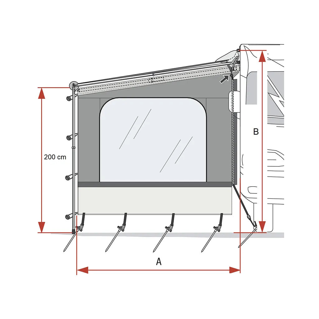 - For awnings fitted at a height of between 240cm to 260cm (measured from the ground to the awning rail)