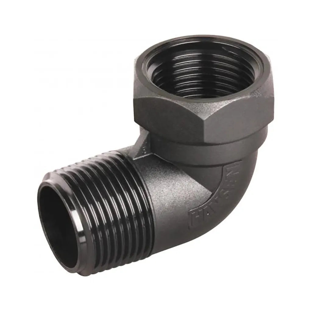 Used to join a Male Thread and a Female Thread at a 90 degree angle. BSPT x BSPT.
