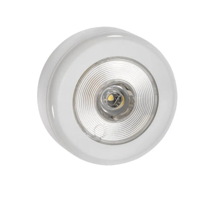 Ultra low current draw from a powerful 1W L.E.D provides a bright and broad spread of light. Pre-wired and can be flush mounted or surface mounted with supplied spacer. Switches on and off by pushing the face of the lamp