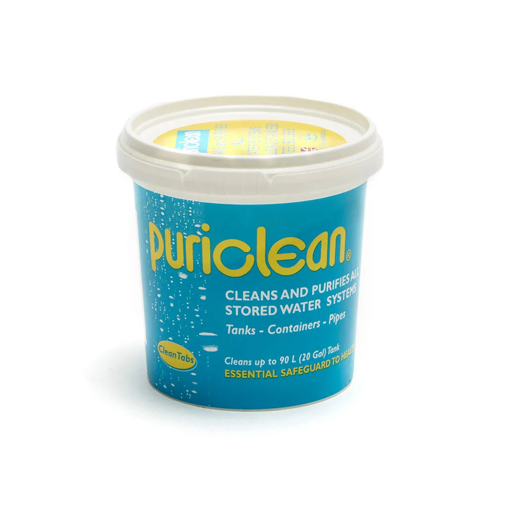 Puriclean provides a simple and effective method of cleaning and purifying the complete leisure vehicle water system. This non toxic, non caustic powder dissolves quickly in water to remove dirt, stains, bacteria and algae.
