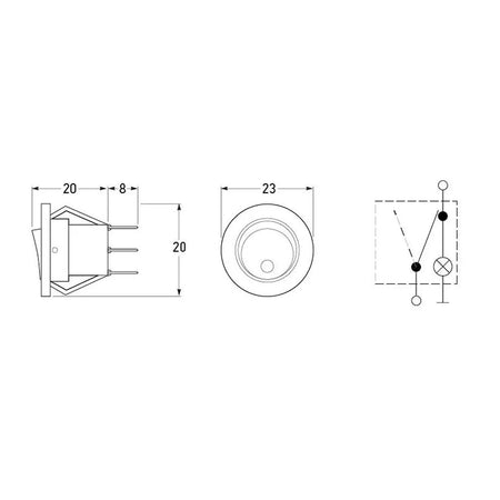 - Mounting: 20mm diameter opening for panels up to 4mm thick