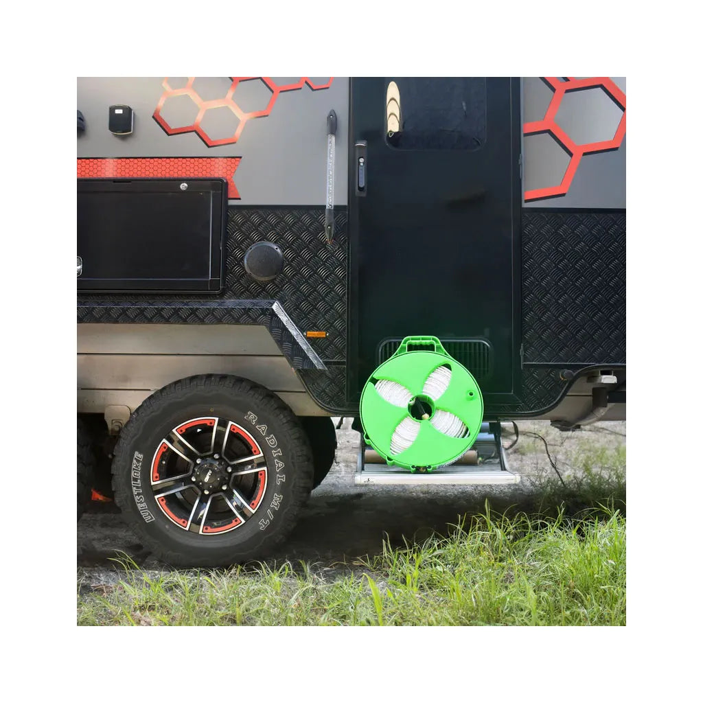 Keep your caravan setup tidy and stress-free with the RV Flomaster 15m Flat Hose Reel.