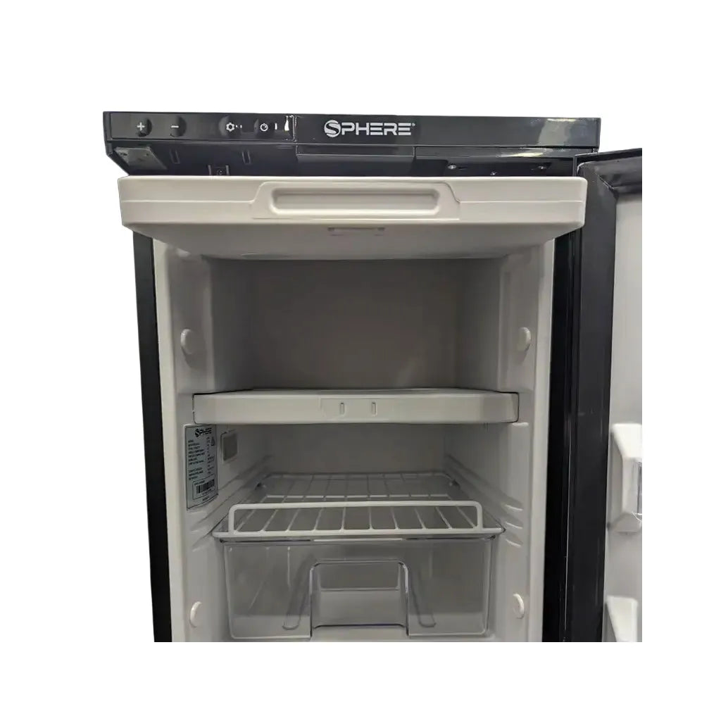 Additional features include an LED interior light, a crisper drawer, removable wire shelves, a bottle holder, and a drain plug for easy cleaning. Whether you're on the road or off-grid, the Sphere UCF44R keeps your food and drinks fresh with a temperature range of 0°C to 8°C in the fridge compartment and -12°C to -20°C in the freezer zone.