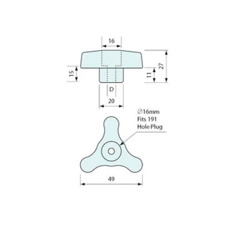 Tri Knob with 5/16" BSW Internal Thread
