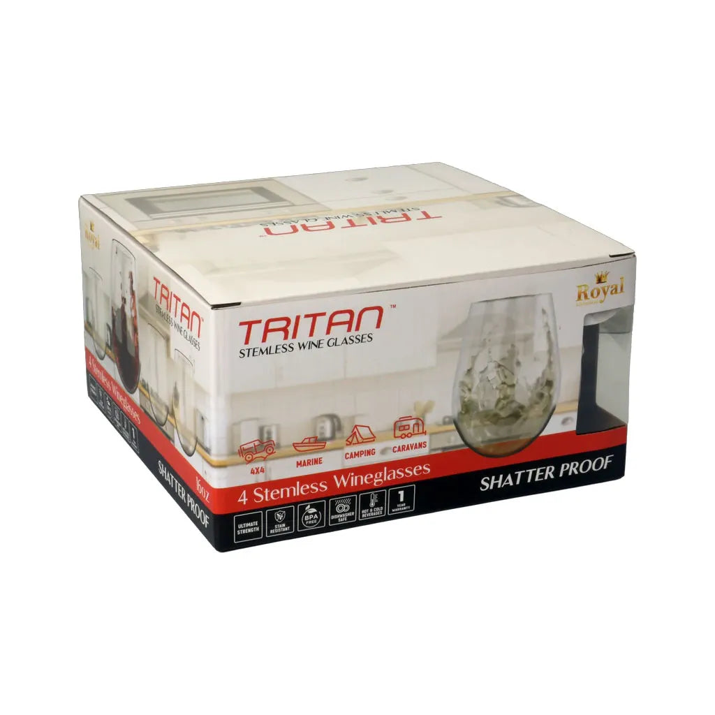 Triton Crystal Clear Stemless Wine Glass 20oz 4 Pack