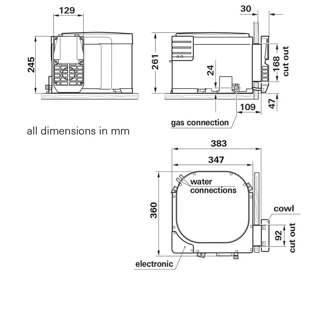 In the Truma boiler (gas), a powerful gas burner heats the water in your caravan or motor home quickly – completely without a power supply. The gas boiler has excellent insulation to ensure that almost no heat is lost. If the water temperature drops, the electronics reignite automatically. Set the desired water temperature anywhere between 30°C and 70°C with the control unit.