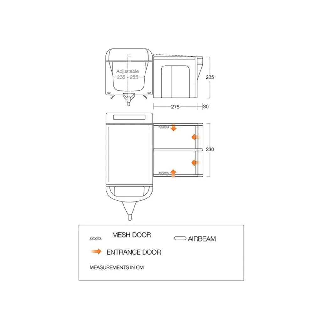 - Optional Mesh Door Pack Available - Mesh doors to increase the flow of air within your awning while keeping bugs out