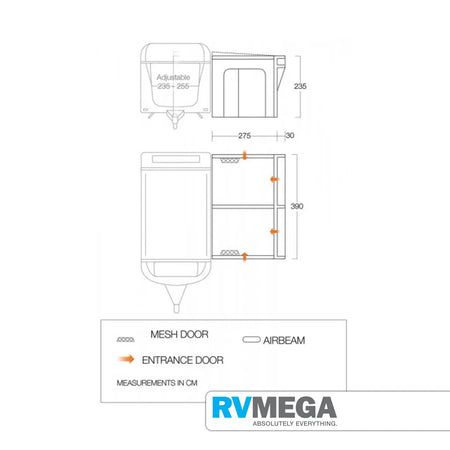 - Optional Mesh Door Pack Available - Mesh doors to increase the flow of air within your awning while keeping bugs out